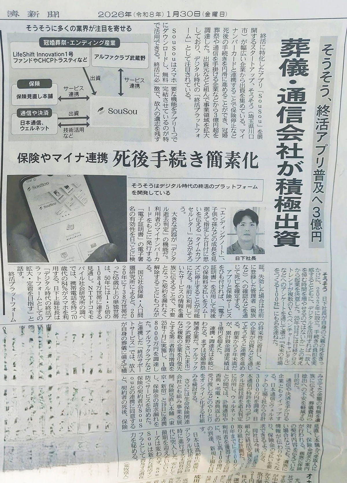 2026年1月30日付の日本経済新聞にて、当社の事業展開と資金調達について詳しくご紹介いただきました。